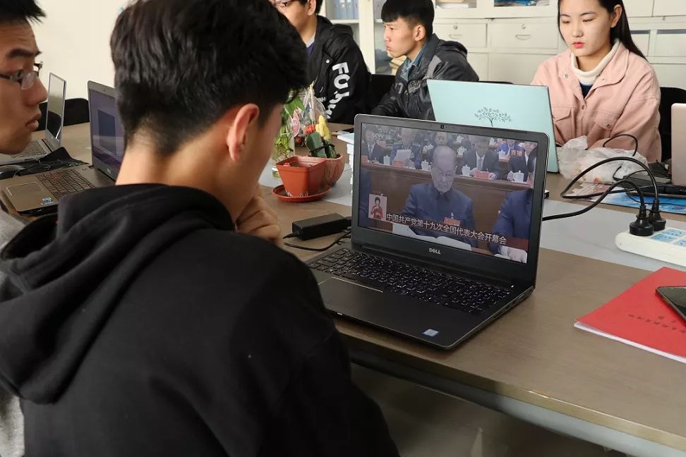 学生党支部和团委组织部分学生党员和团员,在文轩楼303b和305集中观看十九大的开幕仪式。