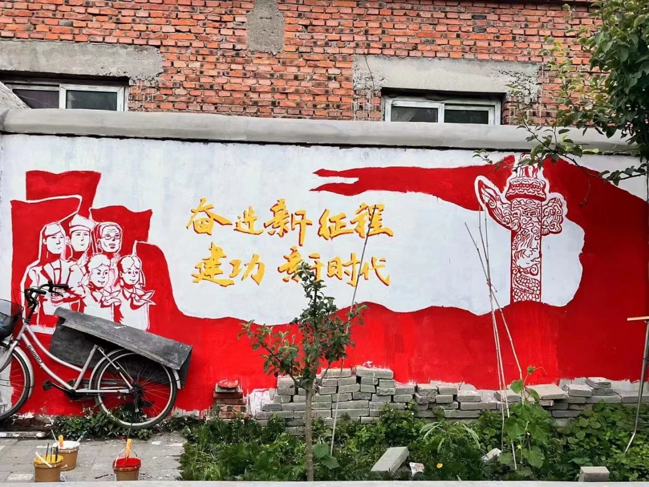 前往阜新市玉丰社区进行墙绘活动的8支队伍,选取了社区内的老旧、破损墙面进行绘画。经过多次充分的讨论和调研,同学们最终决定主题,并且充分发挥本专业的优势,精心设计每一幅墙绘作品。运用鲜艳的色彩和简洁的线条来展现社区居民们的团结友爱和美好生活的场景。将党的二十大精神通过墙绘呈现出来,给社区带来更多积极向上的能量和美好心情。同时,为校地合作,基层社会治理贡献了青春力量。