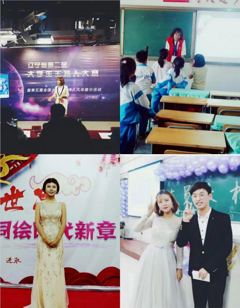 作为校园文化积极分子,她热爱主持,2017和2019获得中央人民广播电台全国主持人大赛辽宁赛区二等奖。多次参加校级演讲赛并获得一等奖。之前十九大期间拍摄的家乡作品,在传媒院获得了特等奖,课余时间还热衷公益志愿者活动,大二曾到民族小学进行支教。