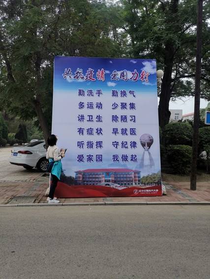 为了迎接返校学生,学校里放置了醒目的祝福展板,在玉龙校园的西门、南门分别设立了防疫测温区、隔离排查区以及各个易直播