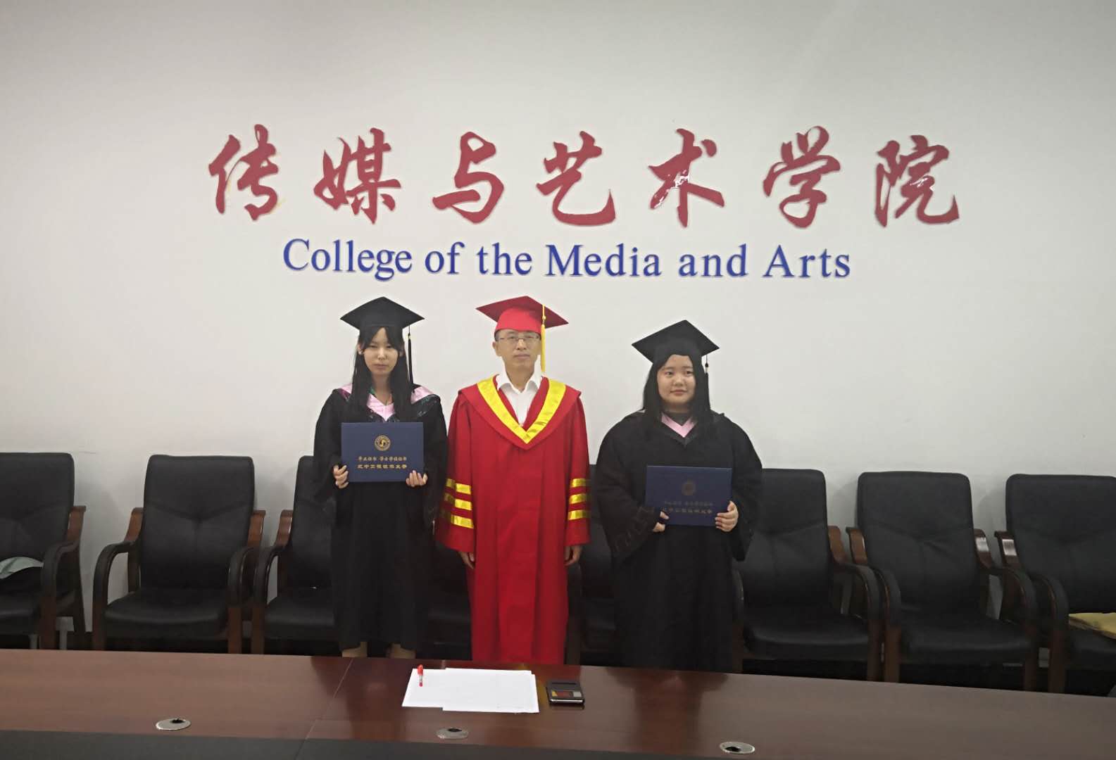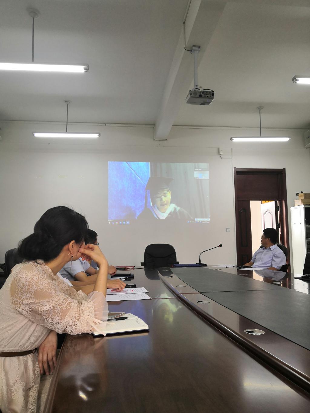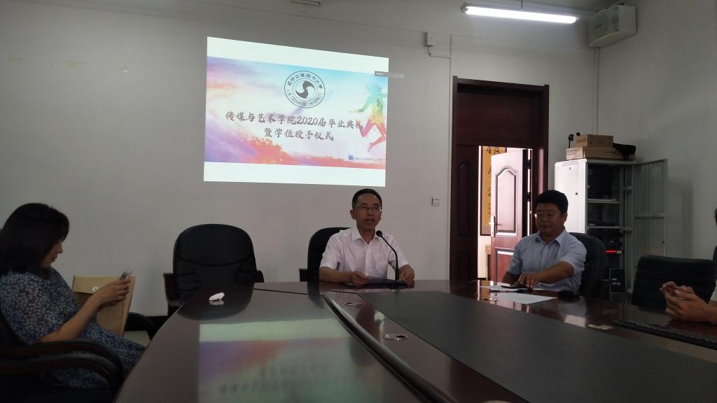 2020届毕业典礼暨学位授予仪式在文轩楼312室举行,现场和线上的广大师生通过视频会议的方式共同见证了这一荣耀时刻。参加本次“云典礼”的嘉宾包括院长兼党委书记邱占勇、新闻易直播