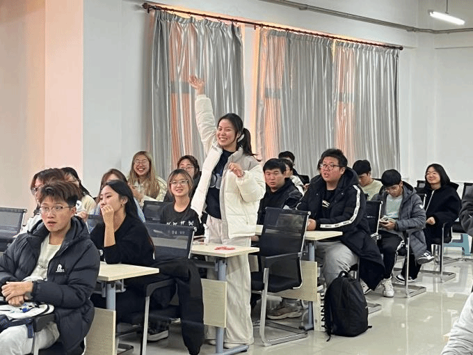 此次活动共分为三个环节:首先“听前奏猜歌名”环节,学生需通过15秒的前奏来判断这首歌的歌名;然后“歌词接龙大赛”环节,从每队的负责人开始,以此句歌词的最后一个字或词为下一个人的开头;最后“歌词飞花令”环节,主持人选择一个词,学生们需回答含有这个词的歌名并唱出来。活动现场热烈而紧张,同学们放下手机、走出网络、放松心态、尽情享受每一项活动。讨论声、欢呼声、歌声此起彼伏。